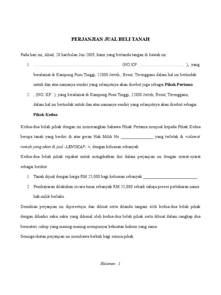Contoh surat perjanjian jual beli tanah doc malaysia berbagi contoh surat. Seperti yang sudah dijelaskan di atas, surat perjanjian jual beli tanah penting. Apa kepentingan surat perjanjian jual beli di malaysia propertyguru malaysia. Surat perjanjian jual beli tanah dan bangunan doc. Contoh surat perjanjian jual beli tanah lot.